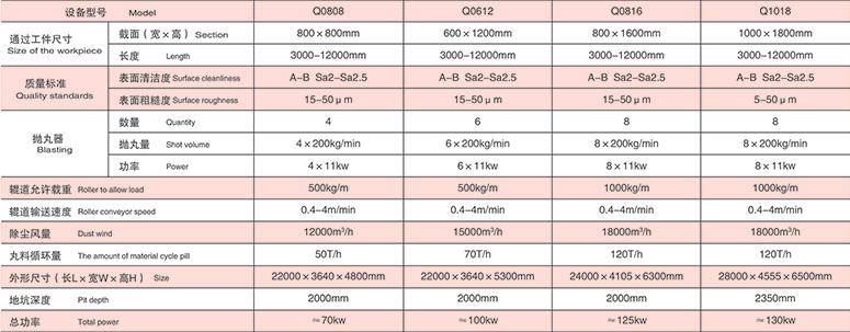 本系列属于辊道式抛丸清理机,主要用于建筑、桥梁等行业用于大型工字型钢、H型钢等尺寸较高的钢结构件消除应力及表面除锈清理。